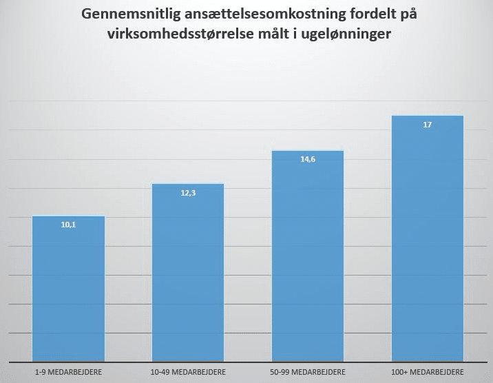 Generelt bruger større virksomheder flere penge på at lave en ansættelse, som man kan se i diagrammet nedenfor.